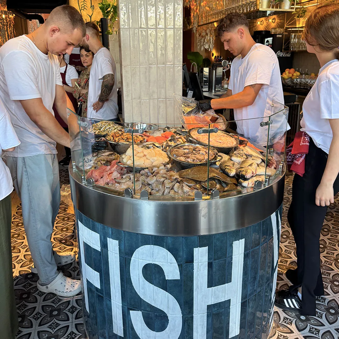 • Satışın temelini oluşturan açık bir “balık vitrini”.